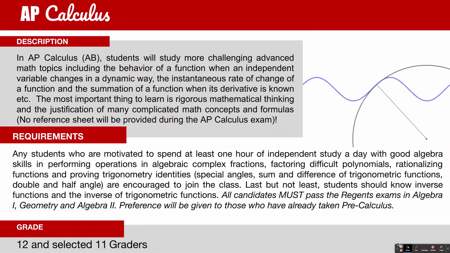 AP English, AP Calculus AB, AP Computer Science, AP Biology, AP Government, AP US History, AP Art History and AP Studio Art, and AP World History.